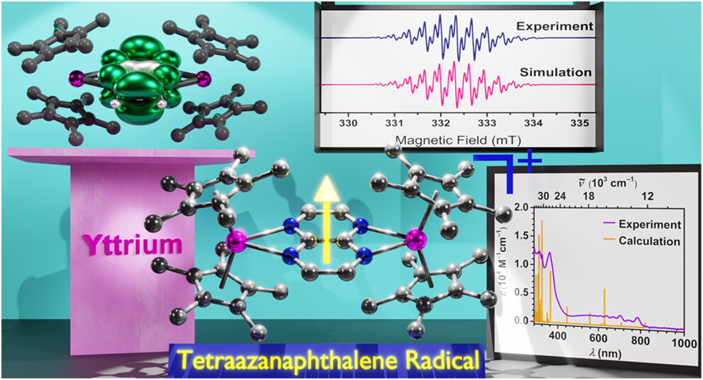In this study, Demir and co-workers synthesize the first dinuclear yttrium complexes bridged by a tetraazanaphthalene ligand in both closed-shell and radical forms. Structural, spectroscopic, electrochemical, and computational analyses reveal that coordination to yttrium stabilizes the tetraazanaphthalene radical and strongly influences its spin and charge distribution.